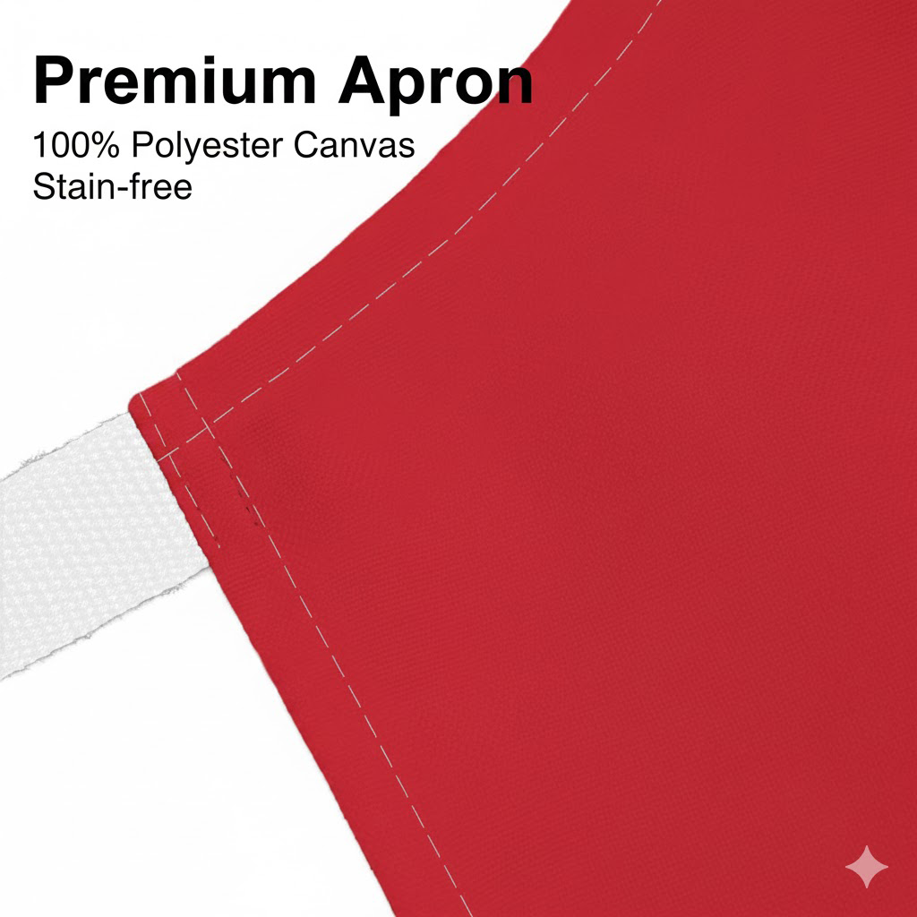 Made from soft, lightweight polyester canvas with white adjustable straps, it delivers comfortable wear and reliable, stain-resistant protection for cooking, baking, grilling, or hosting. The flattering one-size fit ties easily at the back, keeping things secure and stylish as you move around the kitchen.